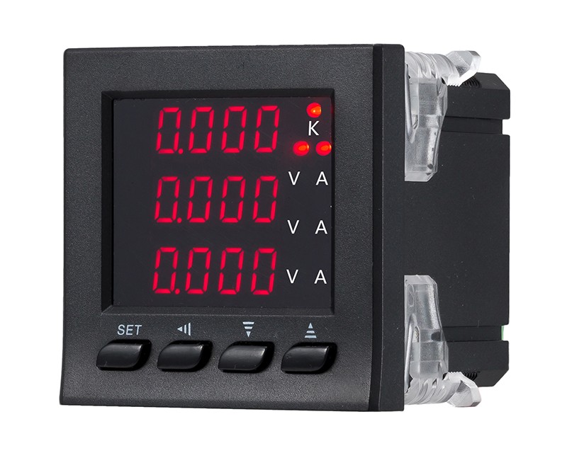 三相数显电压表可同时进行实时测量,并以数字直读方式显示,用一只本仪表即可完成三只普通电压表才能完成的A相电压、B相电压、C相电压或AB相线电压、BC相线电压、CA相线电压的测量任务或三只普通电流表才能完成的A相电流、B相电流、C相电流的测量任务。