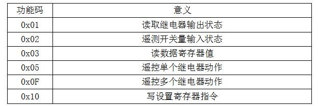 2、功能码:功能码告诉了被寻址到的终端执行何种功能.下表列出仪表所支持的功能码,以及它们的意义和功能